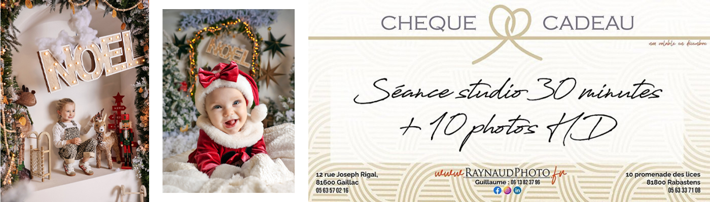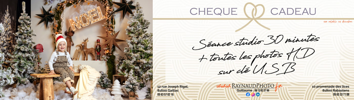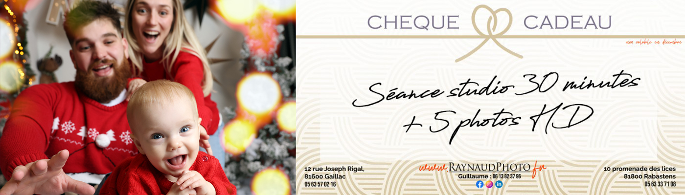 Offrez un chèque cadeau Raynaud Photo pour une séance en studio ou en extérieur.